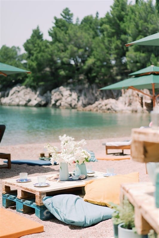 The day began for guests with a ceremony overlooking the beach and the island of sveti Stefan in the background. This flowed into the cocktail reception at the Villa and then dinner by the spa.